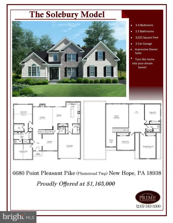 Don't just dream of your perfect home make it a reality. Prime Custom Builders, a premier home builder in Bucks County is ready to work with you to create the perfect place to call home. With numerous designs and customization options, along with exceptional craftsmanship and attention to detail, Prime will incorporate your ideas into a one-of-a-kind retreat. This 3.14 acre lot is a rarity these days in Bucks - a level lot providing privacy with a beautiful pond fed by a small creek and stocked with fish; a relaxing spot for morning coffee or to unwind after a hectic day. Build your home close by and enjoy nature and the beautiful views. This is an ideal location between New Hope and Doylestown, providing easy access to the unique shops, dining, theatre and cultural events that draw people to Central Bucks year after year. Call today for an appointment and make your dream come to life.