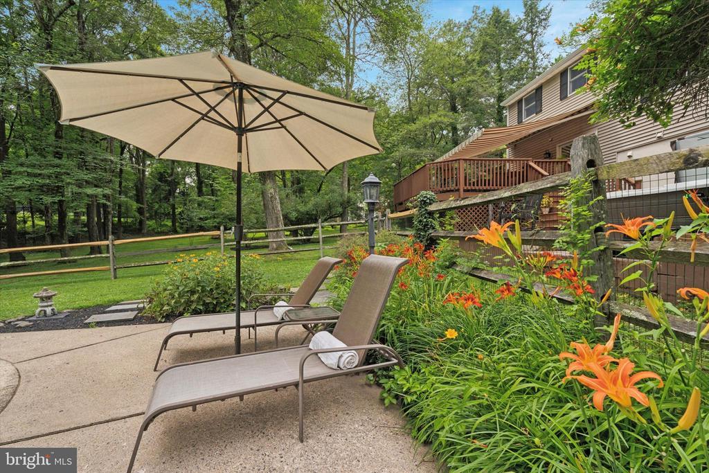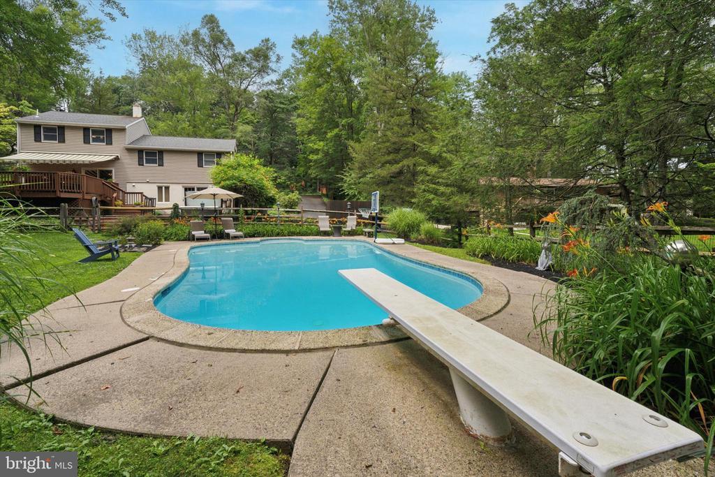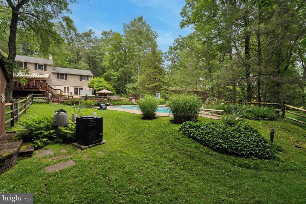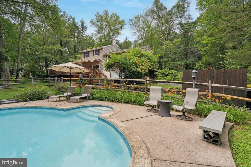 73 Tower Hill Road is nestled into the Tower Hill subdivision, on a beautifully wooded street tucked in just off Easton Road. You’ll have your own private retreat that’s conveniently located just a short walk into Doylestown Borough where you’ll find countless dining, shopping and entertainment options. Outdoor relaxation and entertainment throughout the year will be a highlight of owning this home. In the summer, you’ll have a heated in-ground pool to cool off and relax in, an oversized deck with a retractable awning to shade your late afternoon cookouts, and a patio below for extra entertaining space. Cool evenings and snow days can be enjoyed from the hot tub on the patio, and in all seasons, nature will surround you. Inside the home is a cozy and versatile floor plan with several options to customize the layout to your liking. Entering the home off the driveway, you’ll enter a space that can be used as a sitting room, home office or game room, and there is a sliding door out to the patio from this room. There is also a sitting room, laundry area with access to the crawlspace for storage, and a powder room and separate stall shower (this space could easily be modified to create a 2nd full bathroom. On the main level are a living room with a propane log fireplace, kitchen with peninsula and a dining area with a sliding door out to the deck. From here, you have a birds eye view of the pool, manicured property, and adjoining green space. On the first upper level are a hall bathroom and two bedrooms. Currently one of the bedrooms is shown with a separate sitting area (this space could easily be converted to a 4th bedroom). On the upper level is the oversized primary bedroom, which can be furnished in a number of ways to create your own end-of-the-day retreat. There are many mechanical upgrades to the home, some of the highlights are a whole home backup generator to ensure lighting and comfort in all weather, landscape lighting to illuminate the grounds and the home, newer well pump, newer oil tank, and Hunter Douglas blinds throughout much of the home. With immediate access to Route 202 and 611 and a very short commute to Doylestown Hospital, the location is prime while still having a “tucked away” feel. Come visit 73 Tower Hill Road and find your way home!