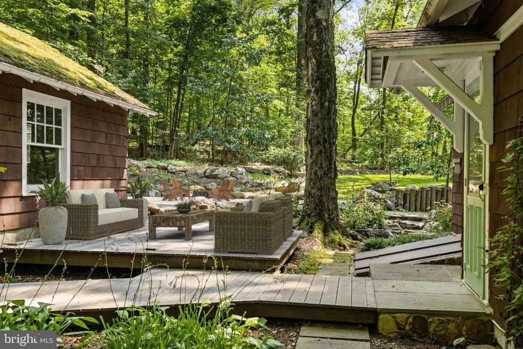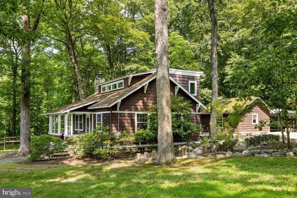 Nestled in a natural rural setting, this charming 1938 Arts and Crafts style bungalow offers a perfect blend of classic character and modern comfort. The park-like setting and Japanese-inspired cottage garden is tranquil and serene. The covered front porch welcomes you to step inside and discover a warm and inviting interior featuring solid hardwood floors, wainscoting, exposed beams and high ceilings. The bright living room is anchored by a wood-burning fireplace with hand-carved oak surround and mantel, perfect for gathering on chilly evenings, and flows nicely to the formal dining room with charming built-in corner cabinet. The country kitchen is efficient with built-in appliances, including a microwave and electric range, and substantial storage with period built-ins and traditional cabinetry. With three bedrooms and two full baths, including a primary bath with jetted tub, this home is designed for relaxation. Ample storage is provided by built-ins and large walk-in cedar closet, ensuring everything has its place. Outside, the expansive 0.84-acre lot features extensive hardscaping, a charming pond, gravel terrace and ipe deck, all surrounded by lush greenery and mature trees. Enjoy peaceful views of the garden and scenic vistas from the deck or patio, perfect for outdoor entertaining or quiet reflection. Located in a highly desirable area, this property offers the best of rural living while remaining close to local amenities. With a detached garage and carport, parking is a breeze. Experience the comfort and charm of this delightful home, where every detail invites you to relax and unwind.