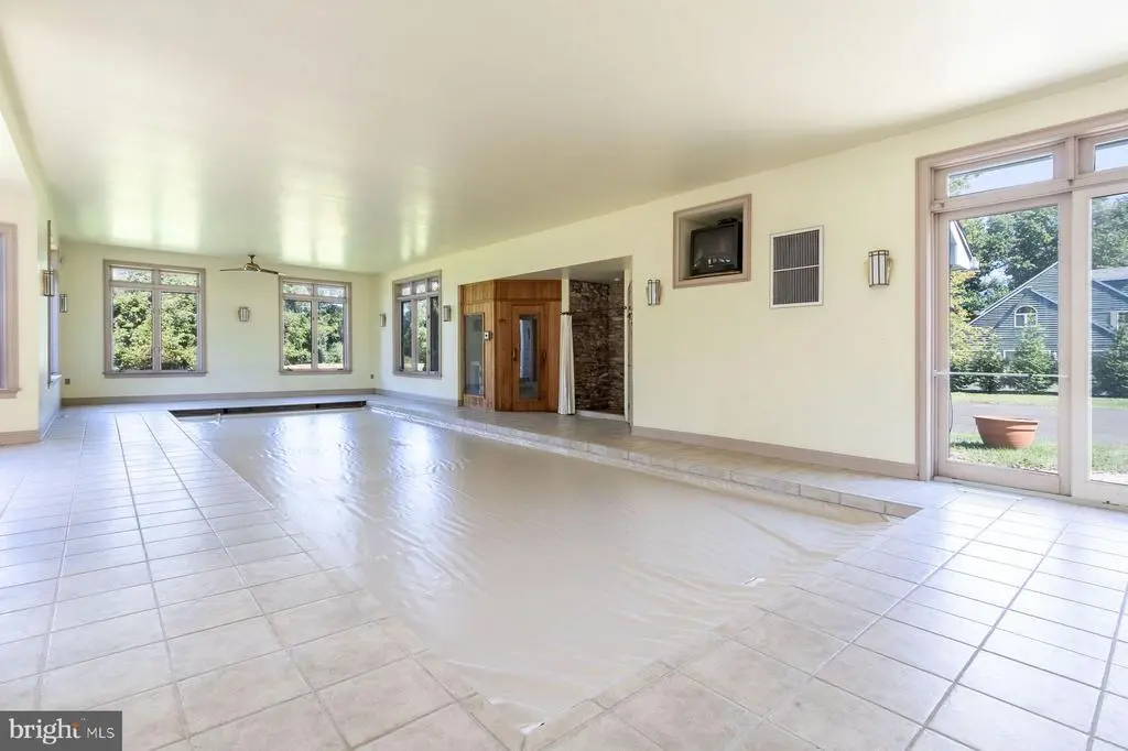 Nestled on over 5 acres in desirable Upper Makefield, Bucks County, this property offers a private setting with a long drive leading back to serene grounds, mature landscaping and long distance views of the beautiful countryside. The home includes many sought after amenities including a large first floor primary suite with sitting area, fireplace, en-suite bath with jacuzzi tub and double walk in closets There is a dramatic two-story great room with a floor to ceiling stone fireplace, large windows, doors leading out to the terrace and deck area and a full size wet bar making this a perfect spot for both indoor and outdoor family gatherings or entertaining. There is also a huge bright 2 story kitchen with a large center island and lots of cabinet and counter space and a lovely glass atrium breakfast room overlooking the gardens and grounds. Also on the main floor is a formal dining room, living room, library/ office and laundry room. The home offers a large year-round indoor pool area complete with tile floors, open stone wall, a stone shower area and a sauna. There is also deck area surrounding the pool with walls of windows perfect for enjoying all four seasons while relaxing by your own private pool. The second floor has an additional 3 well sized bedrooms with walk in closets and 2 baths. The grounds are very private and include a terrace and multi-level decking with beautiful gardens and magnificent views of the countryside. The property is conveniently located just minutes from Newtown with a huge variety of shopping, dining and area schools. It is 10 minutes to I-95 and an Amtrak train station, 70 minutes to NYC, 45 minutes to Philadelphia and 30 minutes to Princeton.