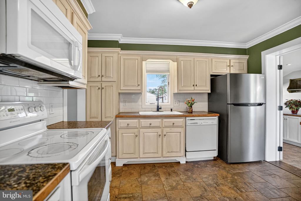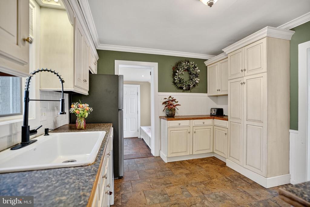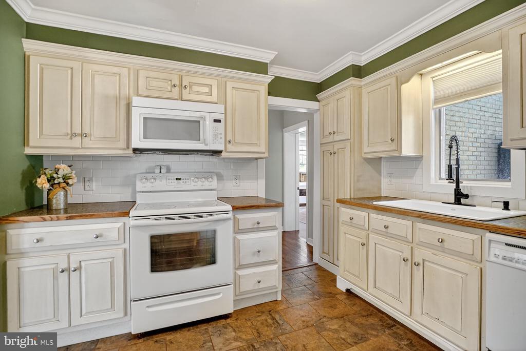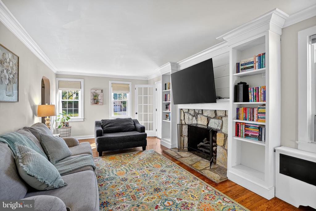 Deceivingly larger than it appears from the street, this charming cape offers a main floor bedroom and bath--downsizers take note! The focal point of the living room is a stunning stone gas fireplace which is flanked by built-in bookshelves. The dining room has a lovely corner cabinet, crown molding and wainscoting. Bright with many windows and a French door, the sunroom is an ideal out-of-the way reading or play room. The kitchen offers ample cabinets, crown molding, tile backsplash and a farm sink. Opening the French door off the kitchen, you will step into the laundry/mud room which highlights a sizable counter for folding laundry and useful cabinets underneath for storage. Noteworthy is the appealing yet very practical bench seat with storage underneath for boots, shoes or bookbags. This bench seat is below a cheery bay window where your houseplants will be spoiled by the large windowsill. Three additional bedrooms, all with hardwood floors and some with built-ins, and an updated full bathroom can be found on the 2nd floor. The fenced-in huge backyard has a delightful patio and bar for outdoor entertaining. The full basement, garage and backyard shed will handle all your storage needs. This home is in a fabulous location, right around the corner from the Y and a short stroll into Quakertown Boro, making it easy to visit all the popular eateries and breweries. Special features include newer roof, hardwood flooring throughout most of the home, quaint arched hallways, custom radiator covers and a newer water conditioner, refrigerator and dryer. The fortunate new homeowner will have the comfort of knowing this property is covered by America’s Preferred One Year Home Warranty.
