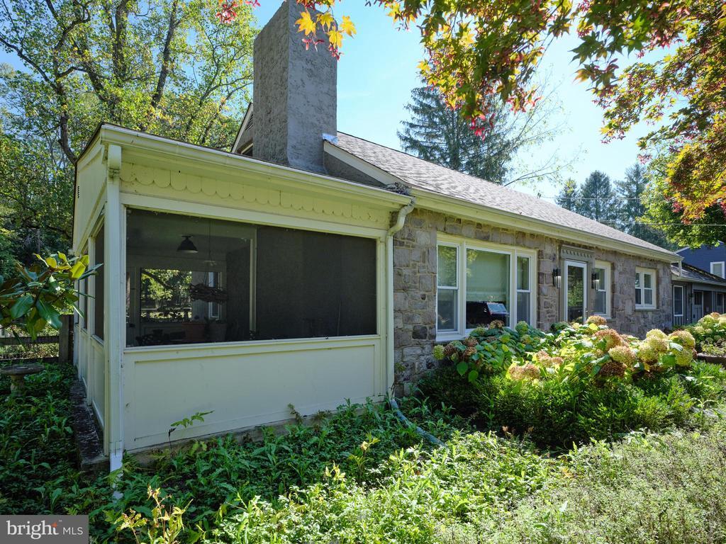 Grey Cairn - Welcome home to this charming Cape Cod home nestled on a beautiful 1.6 acre lot snuggled against woods and surrounded with thoughtfully done landscaping and outdoor living space. Once inside you will find a lovingly updated and meticulously maintained home. The bright living room /dining area with a gas fireplace abuts the thoughtfully renovated kitchen with appliances and new appliances including a Wolf Burner/Oven, a Sub-Zero fridge and plenty of work space. Off the other side of the living room is access to the spacious screened porch with Vermont slate floor ready to transformed into an all year round living area. From the porch, wander into the fenced garden and patio area sheltered by a towering oak for shade on those lazy summer days. For those garden lovers, there is a folly which has created the core of a canvas for the next iteration of an outdoor paradise. Back inside, there are two bedrooms on the first level, the master having a fully shelved walk-in closet. The third bedroom encompasses the entire second floor, creating the opportunity for a second master suite, office or family room. Need more room? Beautiful, level lot with ample room for a renovation to create your dream home, featuring a 5-bedroom septic system already installed. If you like dining out... you are a few minutes to Cock n Bull, Carversville Inn, and the Black Bass. Shopping? Peddler's Village, Doylestown and New Hope... less than 15 minutes. And farmers' markets? You can choose from Manoff's, Solebury Orchard, Maximucks and Rice's Market. So, what are you waiting for? Come home to Grey Cairn!