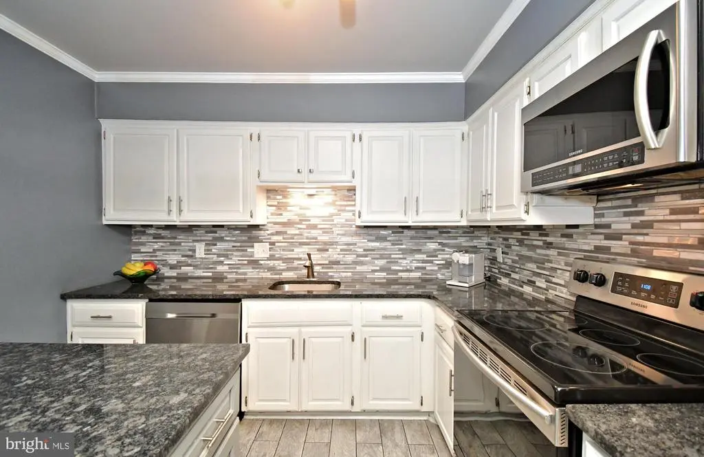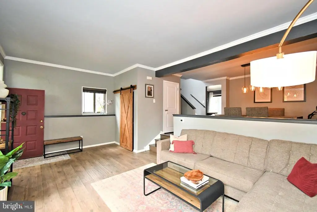 Beautifully updated 3 Bedroom, 2 Bath townhome in the highly sought after Highlands Community located in the Award-Winning Central Bucks School District! The light and bright spacious living room offers a floor to ceiling stone fireplace, crown molding, luxury vinyl plank flooring and a barnstyle closet door. A few steps up to the formal Dining Room with high-end hickory hardwood flooring, crown molding and farmhouse style light fixture. Next you will discover a gorgeous eat-in kitchen with gleaming grantie countertops, spacious island, stainless steel appliances and a slider to the rear patio and fenced-in yard--perfect for entertaining! The second level offers that same hickory hardwood flooring into the hallway and master bedroom with walk-in closet, crown molding and attached modern full bath. Two other good sized bedrooms with hickory flooring and an updated tile full bath and attached laundry room closet area. The finished basement adds for entertaining space along with unfinished storage. This home has 2 assigned parking spots, and is close to major roads and the shopping and restaurants in Montgomeryville and Doylestown. Don't Miss It!