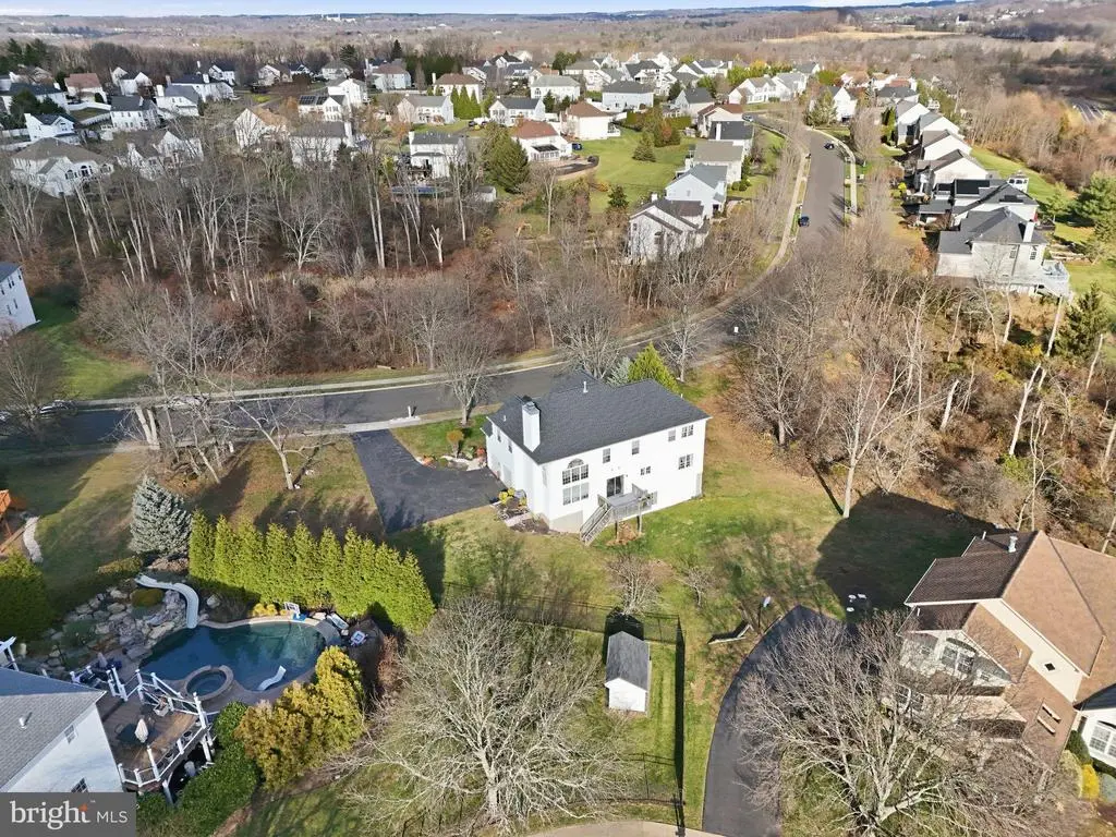 *** OPEN HOUSE Sunday, December 7th 10:00 AM - 12:00 PM *** Large 4 bedroom 2.5 bath, 3,498 sq ft single home on a large premier 1.01 acre scenic lot in Chalfont's desirable Hickory Ridge neighborhood. Walk into 2 story foyer. Formal living room and formal dining room on left. Home office / study on right. Off back of home contains large kitchen with glass sliding doors leading to rear deck and also large spacious two story family room off kitchen with open concept layout perfect for entertaining. Family room also contains plenty of windows which offer plenty of natural light, rear back staircase and elegant slate fireplace as centerpiece of room. First floor also contains a powder room and access to attached 2-car garage. Upstairs contains 4 spacious bedrooms and 2 full bathrooms including the primary suite with vaulted tray ceilings, walk-in closet and its own large bathroom with soaking tub, tile shower and double vanity. Upstairs also includes a conveniently located laundry and also a large attic space which could be converted into a walk in closet, office or 5th bedroom. Large partially finished basement with walk out entry which extends under the entire perimeter of home's living space. Property has endless possibilities including possibilities to add a wrap around deck off the back left side of house which would give Pocono like vibes overlooking the woods and backing to creek. Yard also has plenty of room to add an in ground swimming pool on one of the largest and most private lots in Hickory Ridge. Property also contains a private paved driveway which offers plenty of off street parking. NEW ROOF - September 2025. Home includes a transferrable home warranty in place with current homeowners as well. *** Award Winning Central Bucks School District *** Direct access to Scenic 202 Walking & Biking Trail. Properties like these do not become available often. Don't let this one slip by.