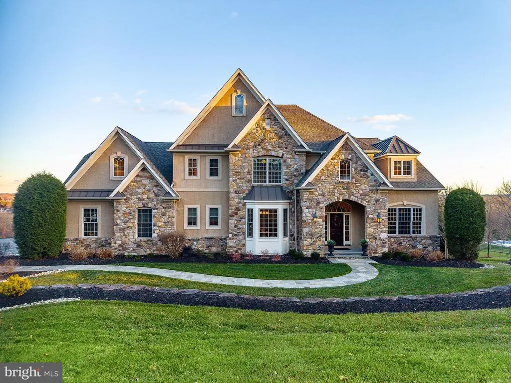 Welcome to 5829 Ridgeview Drive, a beautifully crafted estate home set on just over two acres in Buckingham Township and within the Blue-Ribbon Central Bucks School District. Elevated above the surrounding countryside, this property enjoys breathtaking, unobstructed views for miles, offering spectacular sunrises, dramatic skies, and a true sense of peace and privacy. Screened from the road and positioned high above the valley, the home commands a setting that is both serene and striking. The classic stone façade, manicured approach, and expansive grounds immediately convey quality and presence, while the elevated location ensures sweeping views from multiple vantage points throughout the home. Upon entering, a gracious foyer with hardwood floors and a sweeping staircase sets the tone for the home’s timeless design. The main level flows effortlessly, offering generously proportioned formal and informal spaces filled with natural light. The great room serves as the heart of the home, an inviting space designed for gathering, relaxing, and entertaining, with expansive windows that frame the spectacular landscape beyond. The kitchen is both functional and welcoming, featuring custom cabinetry, granite countertops, a large center island with seating, and high-end appliances including two dishwashers. Open sightlines connect the kitchen to the breakfast area, creating a seamless living experience. Just beyond, doors lead to the elevated deck, where the views become truly unforgettable. From this vantage point, rolling countryside and open sky stretch endlessly, an ideal setting for outdoor dining, entertaining, or simply taking in the quiet beauty of Bucks County. A private home office with custom built-ins provides a comfortable and productive workspace, while additional main-level rooms offer flexibility for both everyday living and entertaining. Upstairs, the primary bedroom suite is a tranquil retreat, featuring vaulted ceilings, abundant natural light, and stunning views across the valley. The en-suite bath is spa-inspired with dual vanities, a soaking tub, and a glass-enclosed shower. Additional bedrooms are generously sized, offering comfort, privacy, and ample closet space. The fully finished lower level is a standout feature of the home, thoughtfully designed for recreation and entertaining. This expansive space includes a custom bar area, billiards and game spaces, and multiple areas for gathering and relaxation. A stone fireplace anchors the lower level, adding warmth and character, while a full bathroom enhances convenience for guests and entertaining. A three-car garage, expansive driveway, and beautifully maintained grounds complete the property. Ideally located just minutes from Doylestown Borough, New Hope, and major commuter routes, 5829 Ridgeview Drive offers the rare combination of privacy, elevated views, and refined living in one of Bucks County’s most desirable settings. This is a home where the views define the experience, offering a sense of retreat, beauty, and timeless elegance in every season.