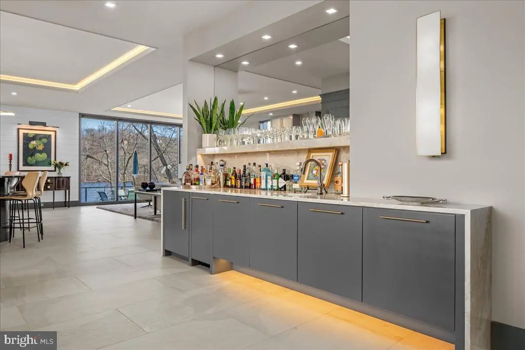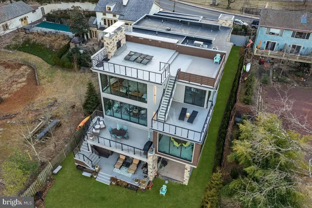 Modern Riverfront Estate with Unparalleled Indoor-Outdoor Living Welcome to 182 S. Main Street, a rare opportunity to own one of New Hope’s few new-construction riverfront estates. Built in 2021 with every luxury in mind, this architectural showpiece blends cutting-edge design with the timeless allure of life along the Delaware River. From the moment you enter the two-story foyer, you’re met with sweeping river views that flow throughout the home’s open living spaces. The main level features radiant-heated floors, a chef’s kitchen with Sub-Zero refrigerators, wine refrigerator, and Wolfe gas stove and double ovens with warming drawer, plus a wet bar with sink, refrigerator, and ice maker—ideal for entertaining in every season. The adjoining family room opens to a spacious riverfront terrace, creating an effortless connection between indoor and outdoor living that is truly unparalleled. Additionally there is a half bath and laundry on the main level. The primary suite on the main level serves as a private retreat, complete with two large walk-in closets—one showcasing a sparkling chandelier and built-in TV for a touch of glamour—along with a spa-inspired bath. Upstairs, you’ll find three additional bedroom suites, each with a private bath, as well as a dedicated office and an expansive family/media room with bar and an additional half bath and laundry. The upstairs bathrooms feature radiant-heated porcelain floors, and the family room boasts a 100-inch drop-down screen, wet bar with ice maker, microwave, refrigerator, and dishwasher, and panoramic river views. This versatile upper level can function as a private living area for family or guests, with both front and rear terraces extending the space outdoors. The home’s roof deck offers one of New Hope’s most exceptional outdoor living experiences—a dramatic vantage point complete with a fireplace and unrivaled views of the river and fireworks, making it one of the area’s most spectacular private spaces. The lower level continues the sense of luxury with 10-foot ceilings and radiant-heated floors throughout. The media and game room opens to a covered patio with built-in heaters and a private hot tub overlooking the water. From here, a floating dock provides direct access for boats and two jet skis, making river recreation effortless. Car enthusiasts will appreciate the innovative car-lift system connecting the main-level garage to the lower level, accommodating four vehicles below, one on the lift, and two in the main garage—plus parking for five additional cars in the driveway. A large storage space beneath the driveway provides ample room for summer gear, river toys, and seasonal décor. There is also an additional storage space that has a garage door to the backyard, great for bringing water toys in or versatile storage space. Additional features include: • Fully integrated smart-home system controlling lights, shades, and sound throughout • Hardwired indoor and outdoor speaker system • Professionally landscaped riverfront grounds With its unmatched combination of design, technology, and river access, 182 S. Main Street stands as one of New Hope’s most remarkable modern estates—offering unparalleled indoor-outdoor living just steps from the heart of downtown.