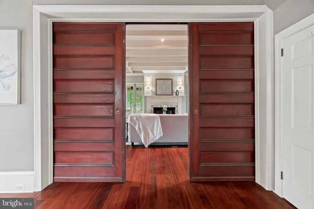 Attic, Bathroom - Stall Shower, Bathroom - Tub Shower, Bathroom - Walk-In Shower, Cedar Closet(s), Crown Moldings, Double/Dual Staircase, Exposed Beams, Formal/Separate Dining Room, Primary Bath(s), Recessed Lighting, Upgraded Countertops, Wainscotting, Wet/Dry Bar, Window Treatments, Wood Floors